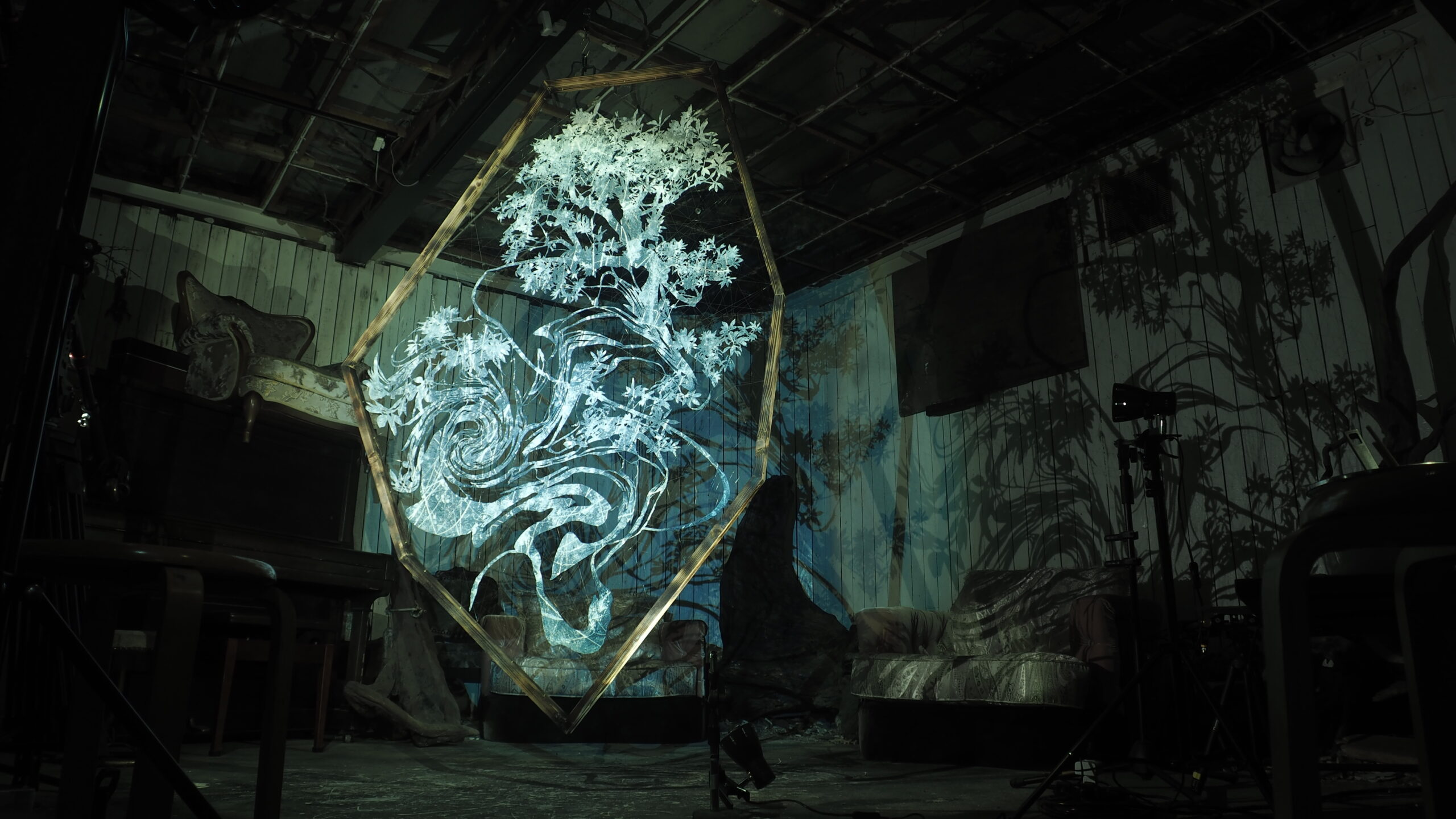影を表現するための装置として作品や空間を構築する。